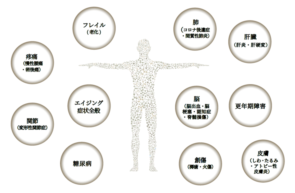 Stem cells are known to continuously divide and differentiate while simultaneously secreting various biological factors※1. These factors play important roles in regulating inflammatory responses and supporting tissue repair※2. Through these mechanisms, various research studies suggest that stem cells may help maintain bodily functions or support improvement of chronic conditions. (Source:※1 Weissman IL, et al. Cell. 2000;100(1). ※2 Caplan AI, Dennis JE. J Cell Biochem. 2006;98(5).)