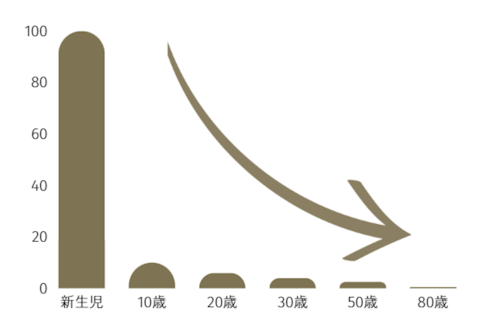 Under normal circumstances, stem cells play a vital role in maintaining and repairing tissues in response to daily cellular damage and aging. However, as we age, both the number and function of stem cells gradually decline. Research has shown that stem cell activity in middle-aged and older adults is significantly reduced compared to younger individuals (Source:López-Otín C, et al. Cell. 2013;153).