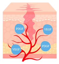 PDGFとVEGFの作用により血管新生が誘導され、創傷部位の血流環境が整えられる。
